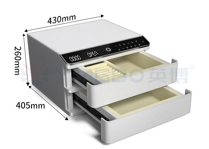 Leerbedekte sieraden kluis heeft een nieuw uiterlijk, getemperd glas paneel, krasbestand en hoge temperatuur, visuele werking, eenvoudig en handig.
